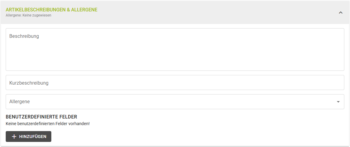| Allergene | Allergene des Artikels definieren |