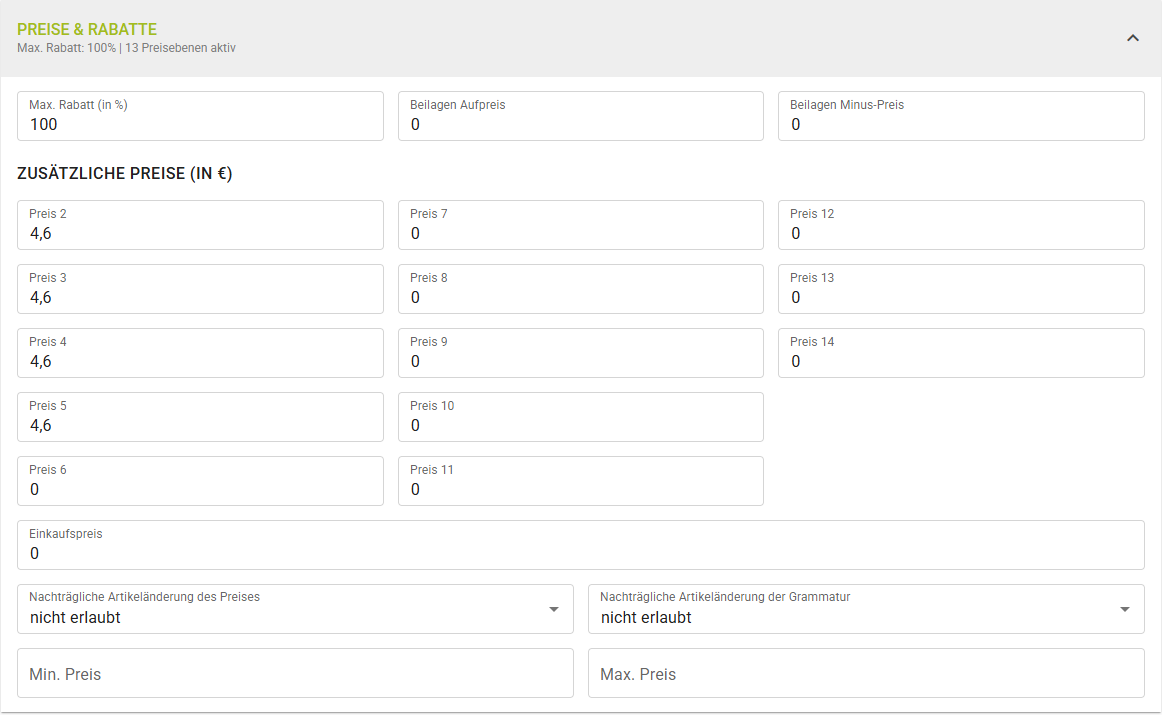 | Einkaufspreis | Einkaufspreis des Artikels als Information. |