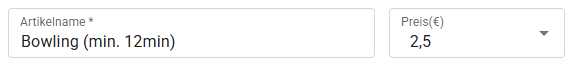 | Zeitartikel | Kann für Bowling, Billard, usw. verwendet werden. Bei der Bonierung wird eine Startzeit gesetzt und beim Abrechnen eine Endzeit. Liegt die Zeitdauer unter der Mindestdauer, wird die Mindestdauer in Rechnung gestellt. Als Preis wird der Preis der Zeiteinheit angegeben.![]() ![]() Ein Beispiel: 3 Minuten kosten € 2,50--> 6 Minuten somit € 5,00 usw. Wird kürzer als 10 Minuten gespielt, werden aber mind. 10 Minuten in Rechnung gestellt (=Mindestdauer). Für den Zeitartikel sind folgende Berechtigungen wichtig: |